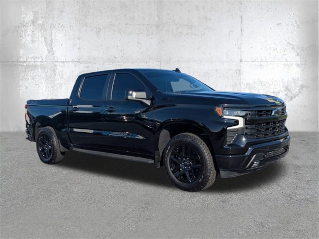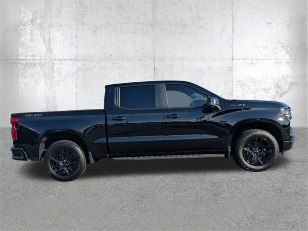 Black 2025 Chevrolet Silverado 1500 RST 4WD 8-Speed Automatic EcoTec3 5.3L V8 8-Speed Automatic, 4WD, Black Leather.
